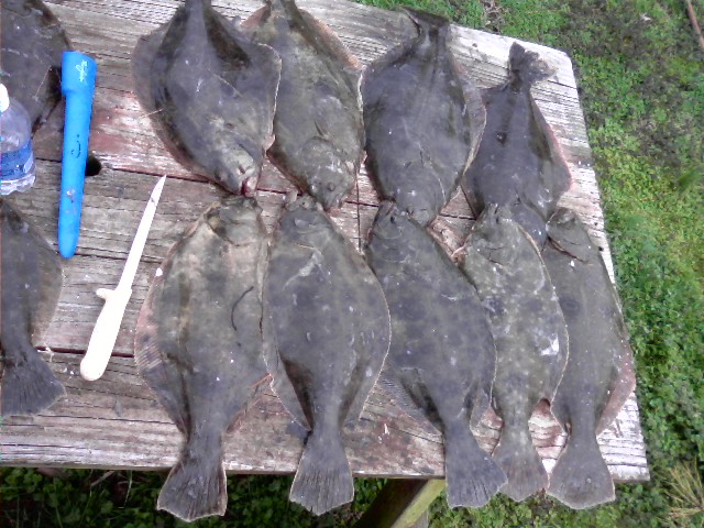 A nice catch of early spring flounder. Now this is the start of a fine dinner.