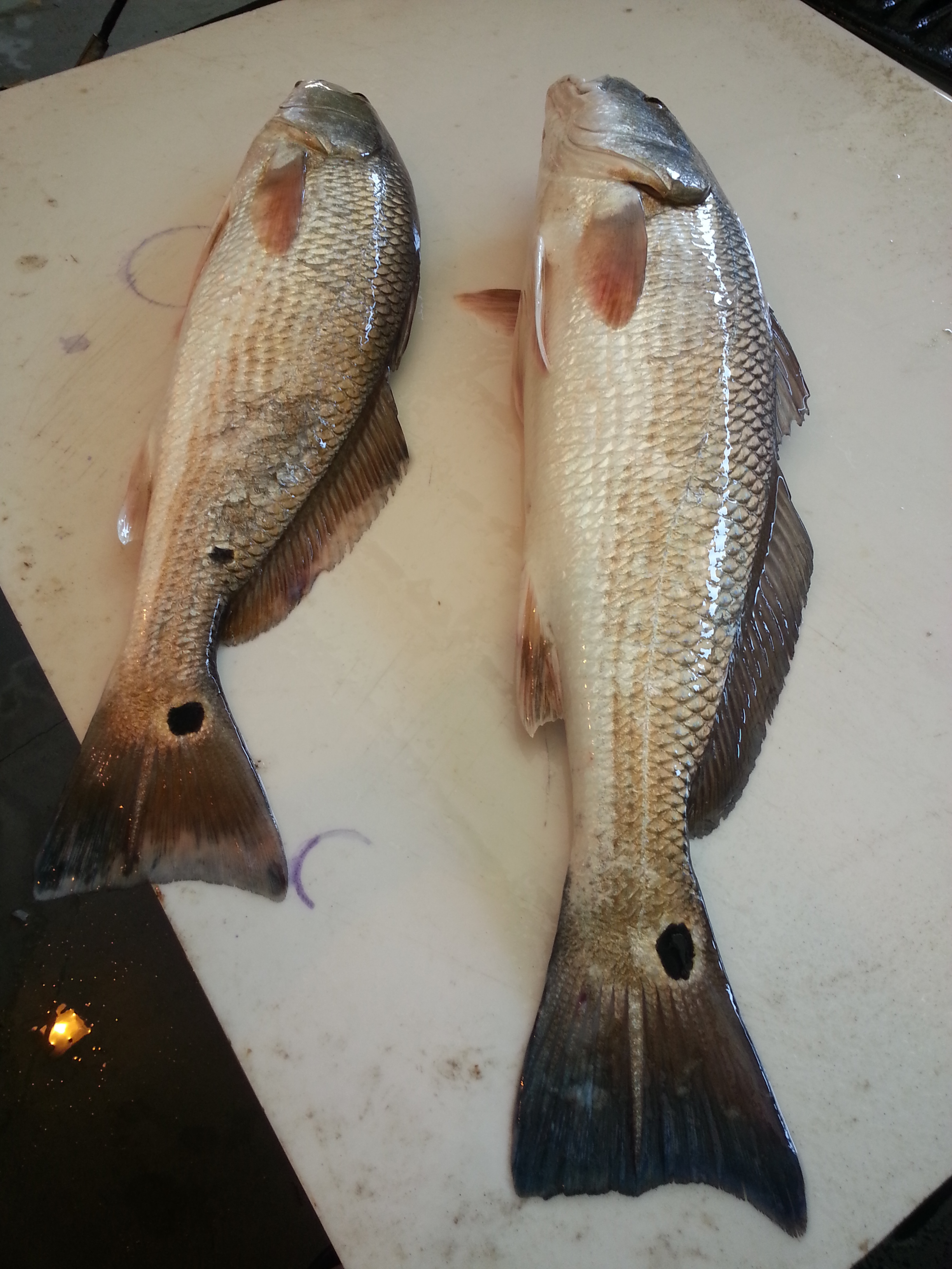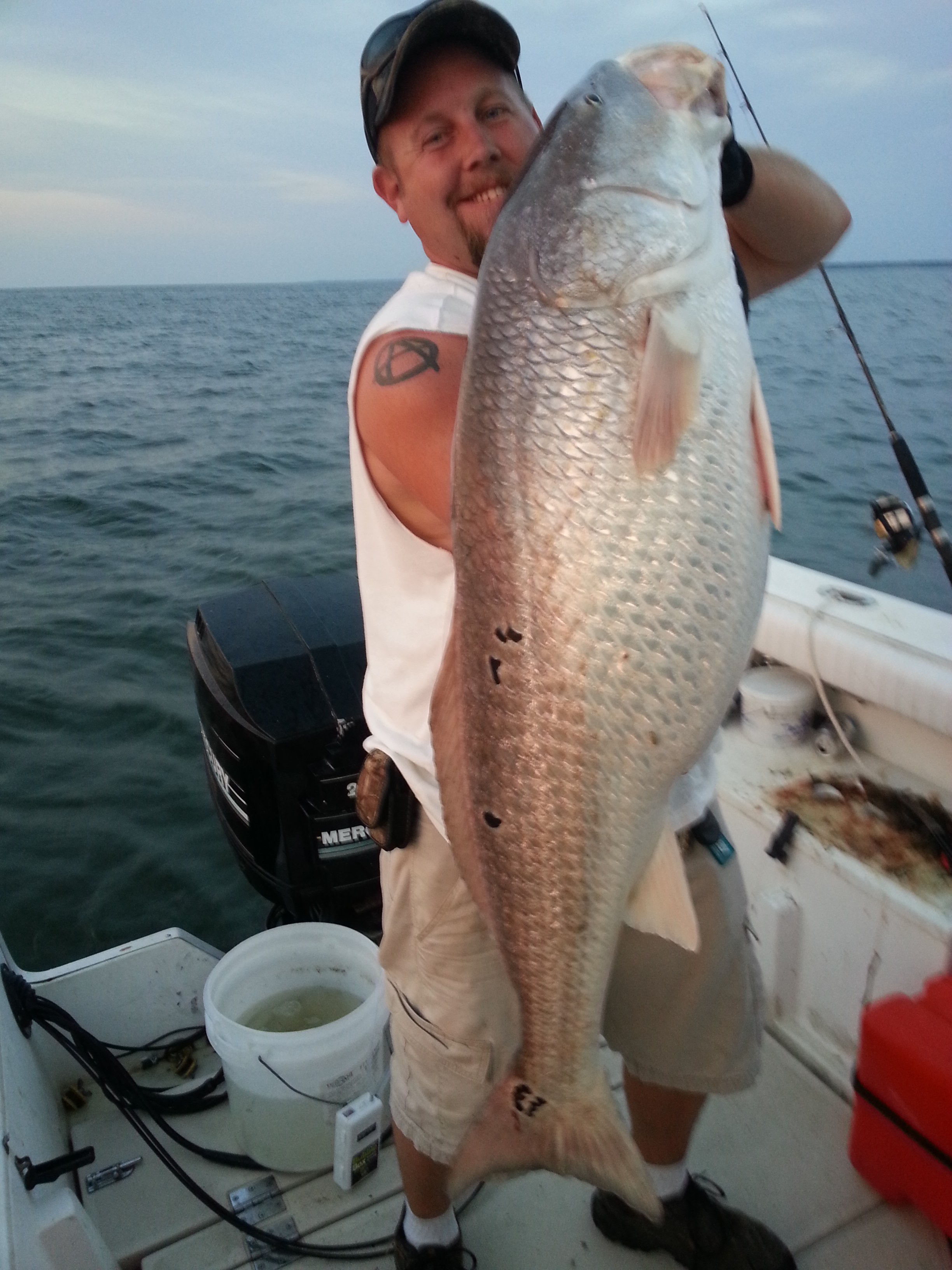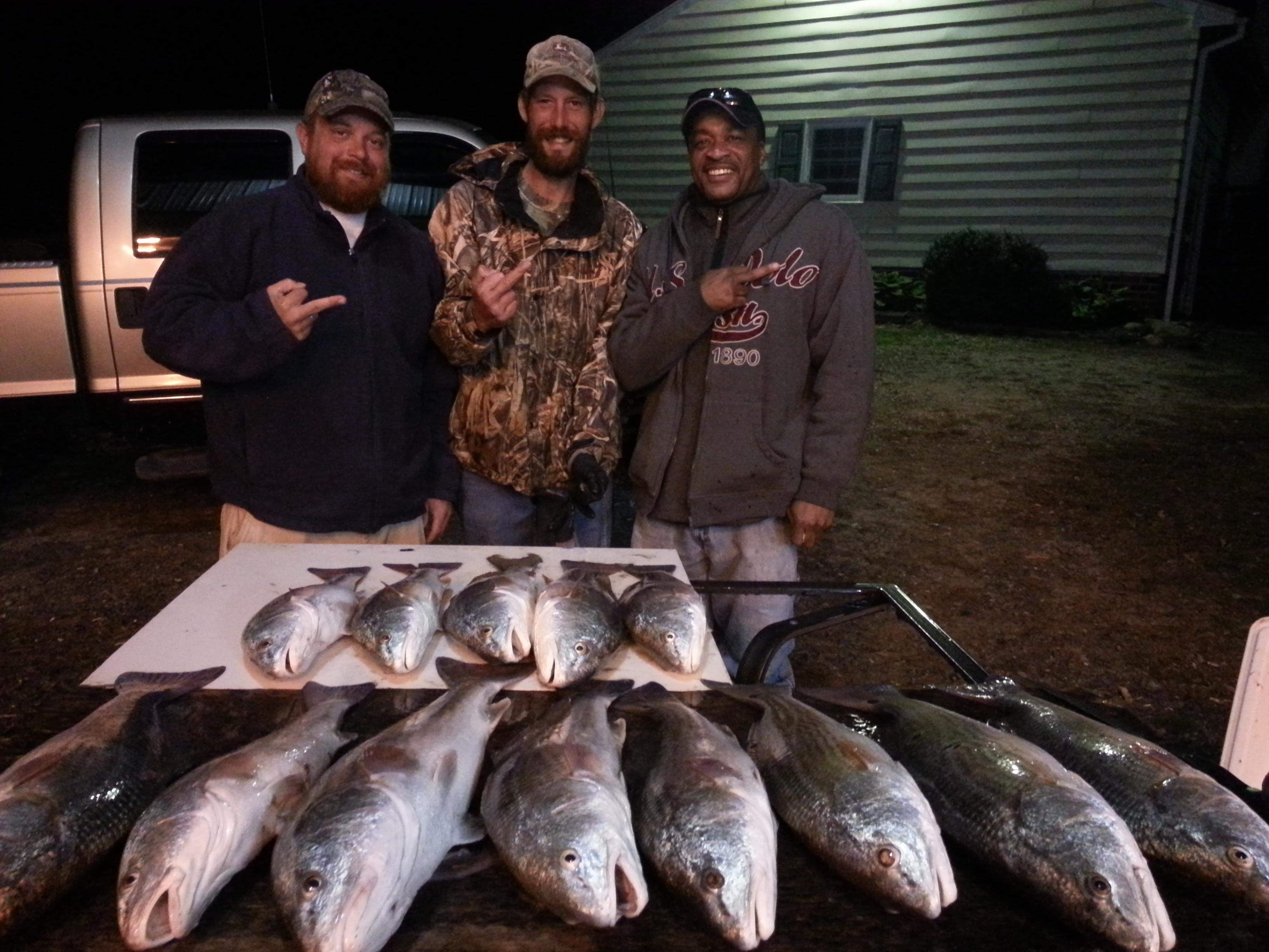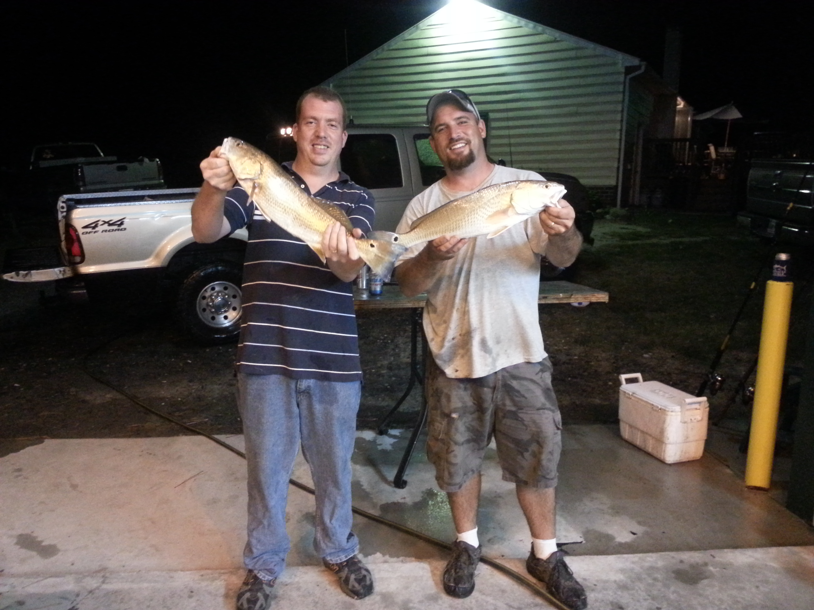 ![Spawning red drum out of Morleys Wharf Virginia]()