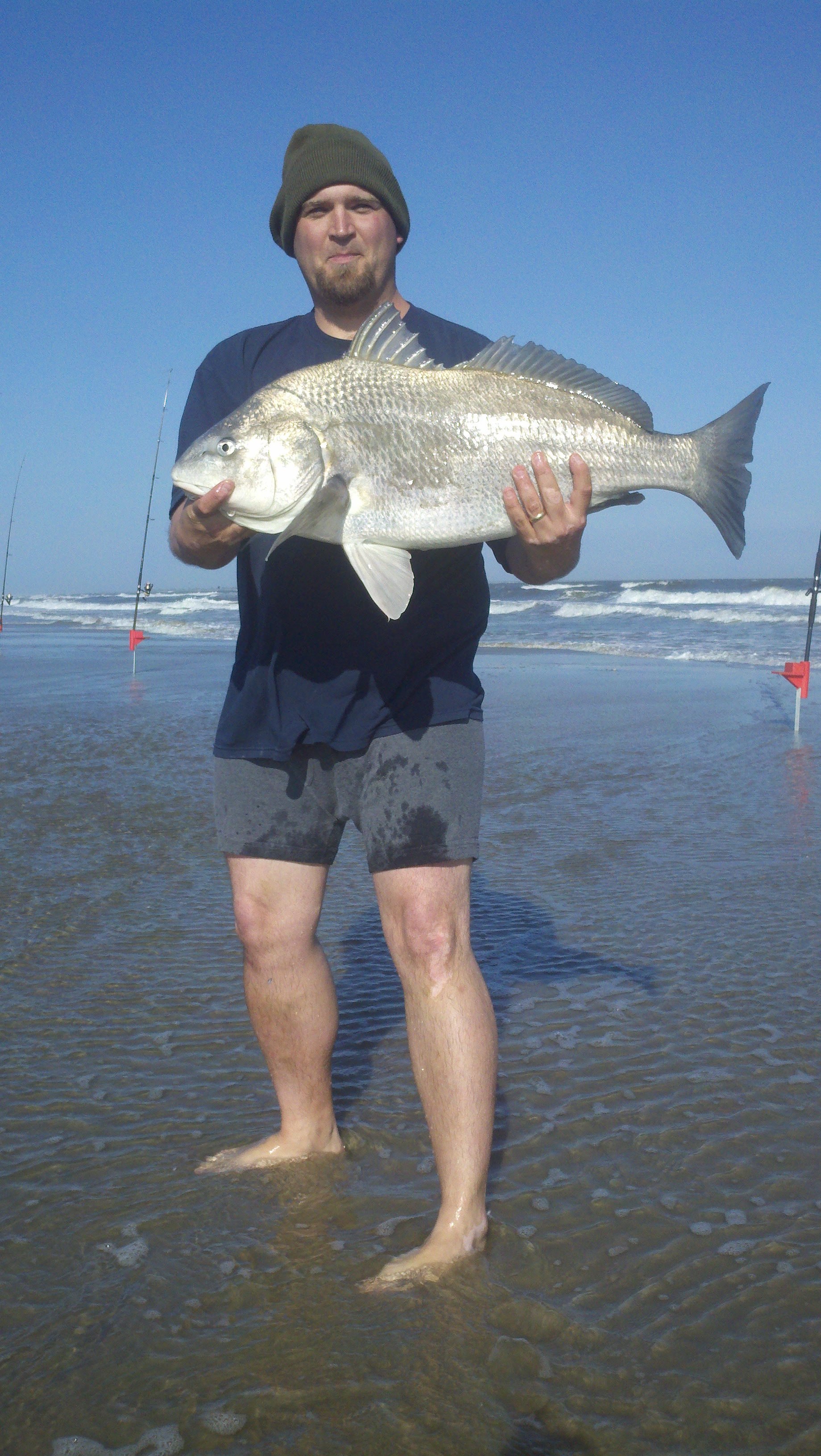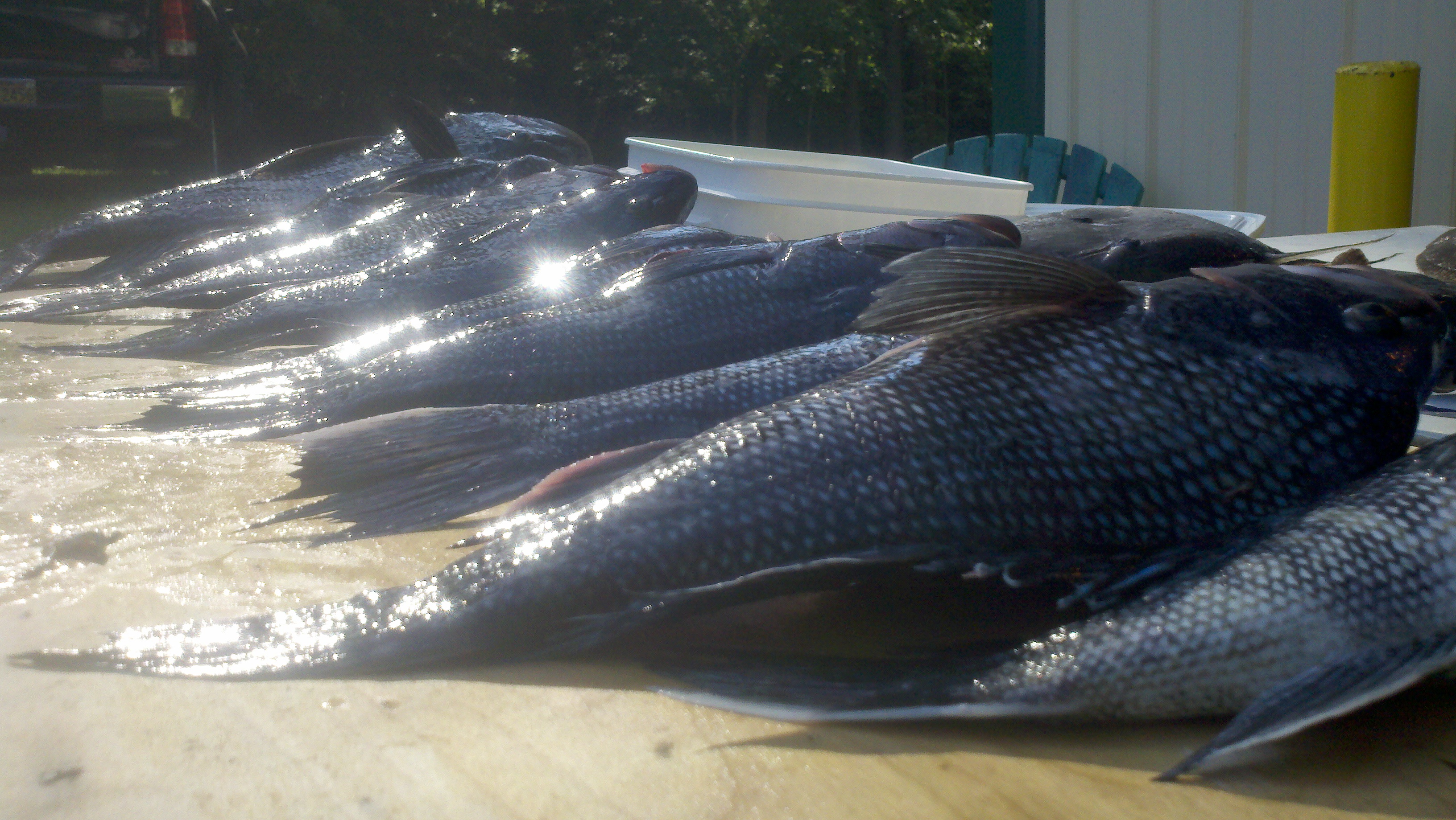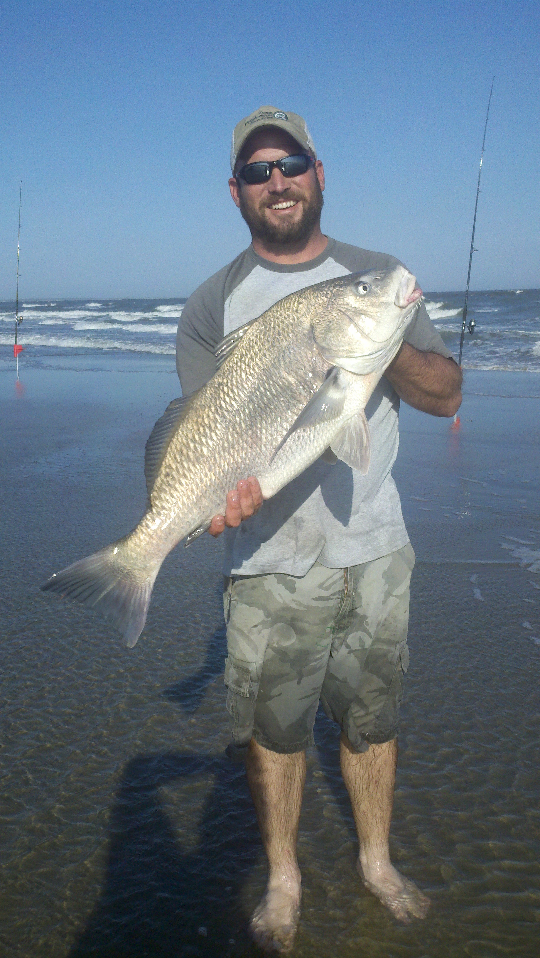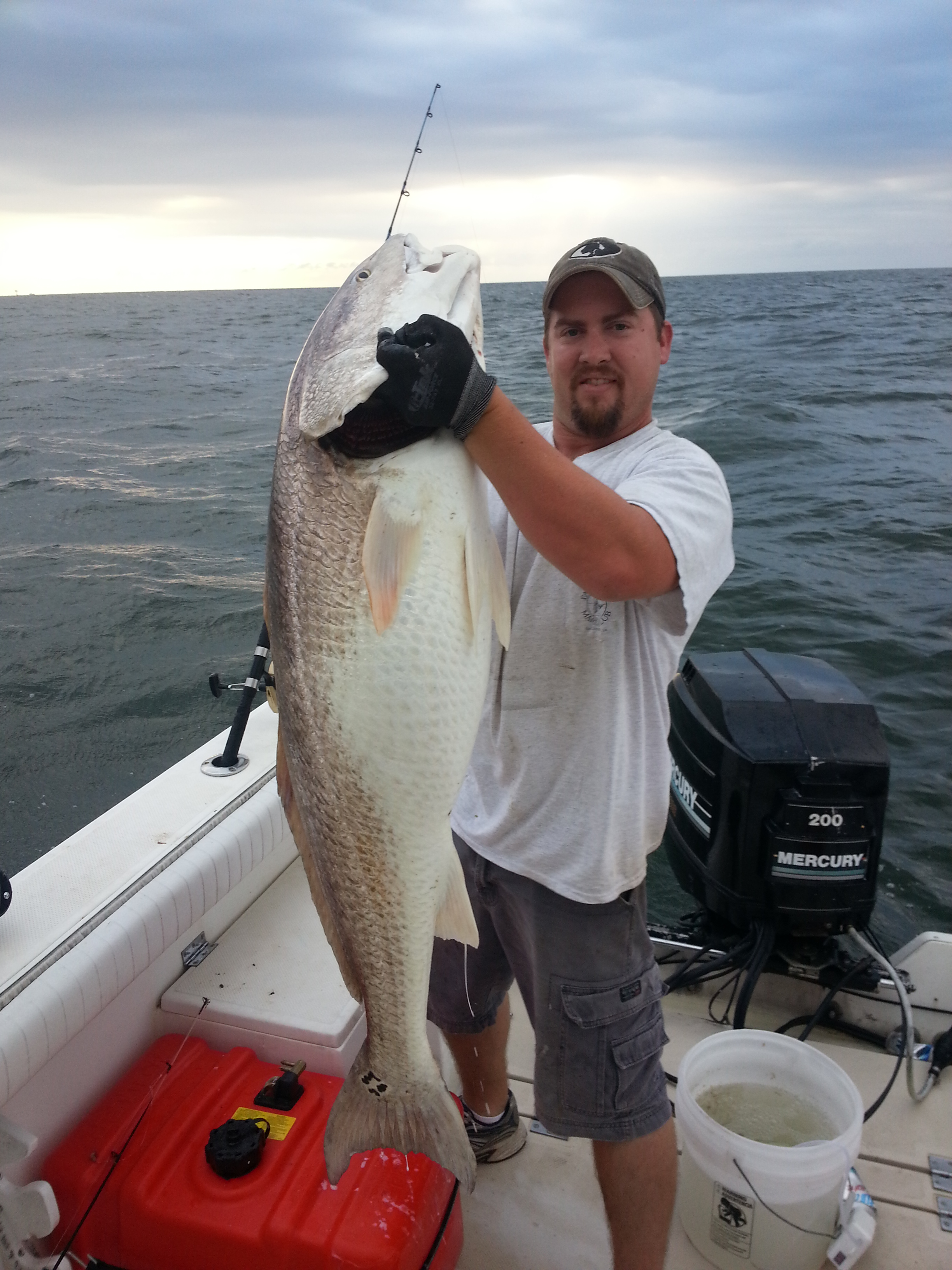 ![Spawning red drum out of Morleys Wharf Virginia]()