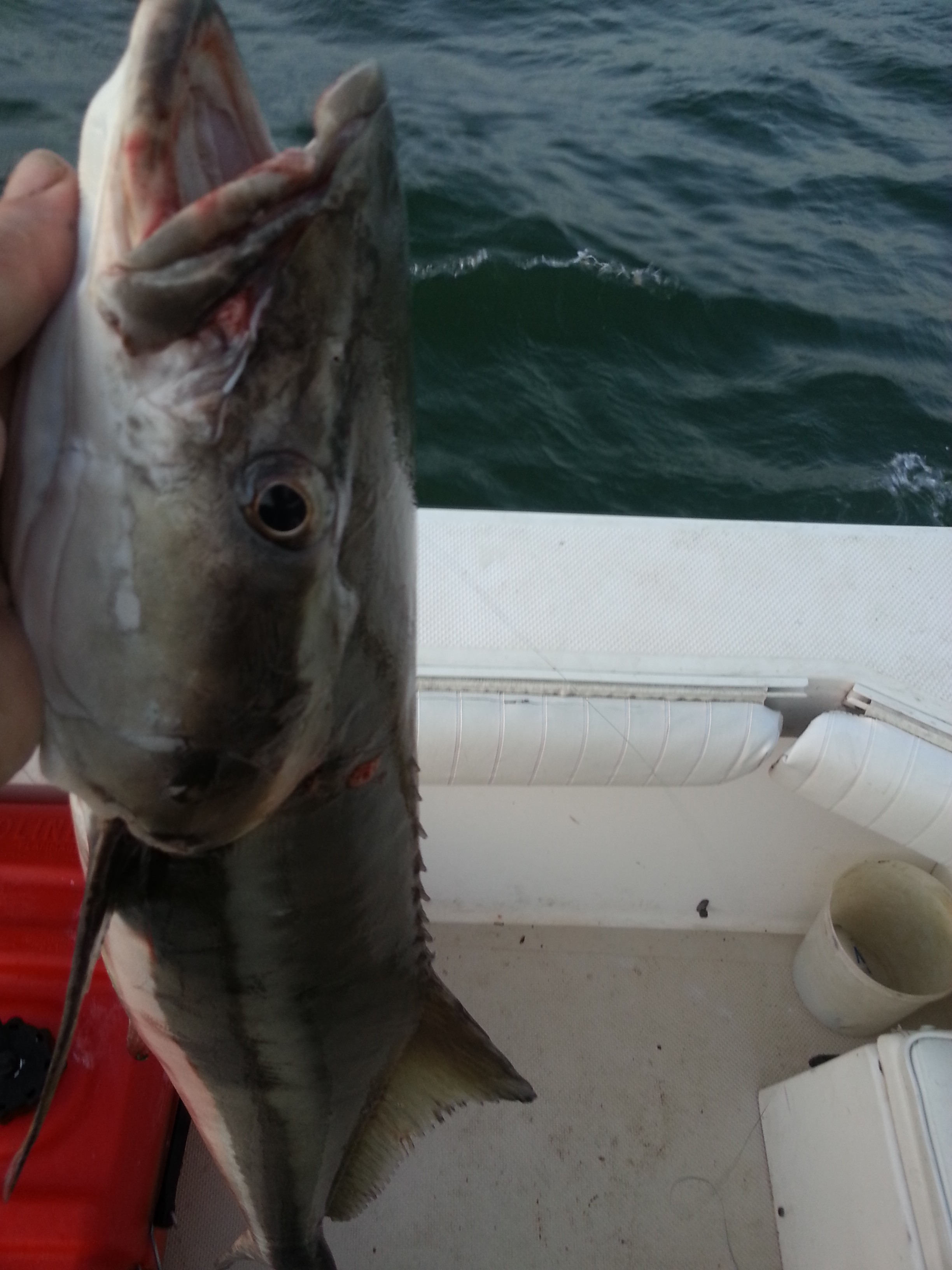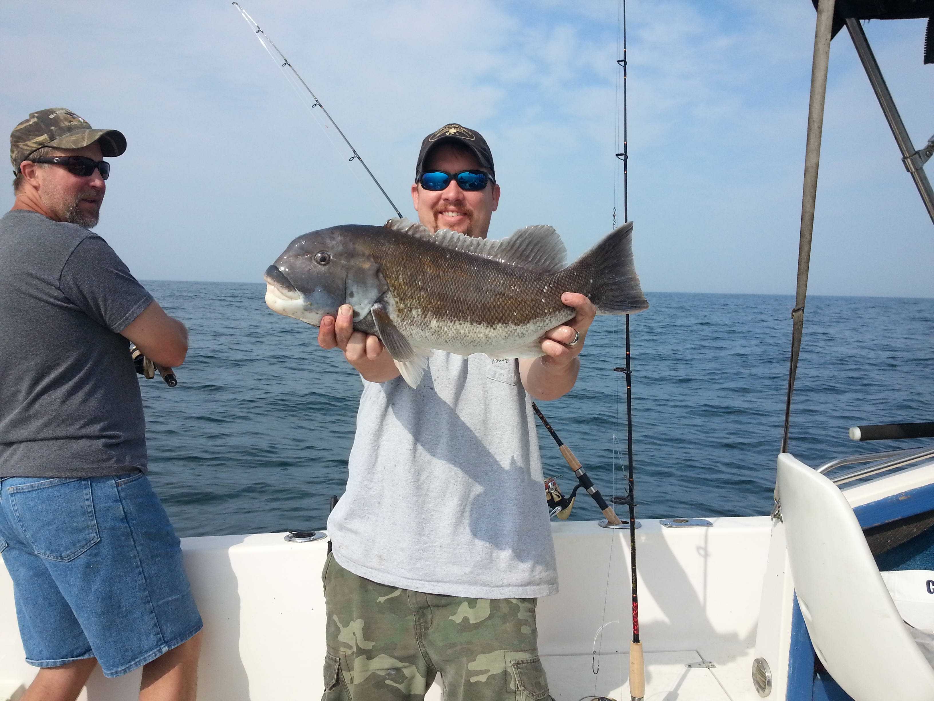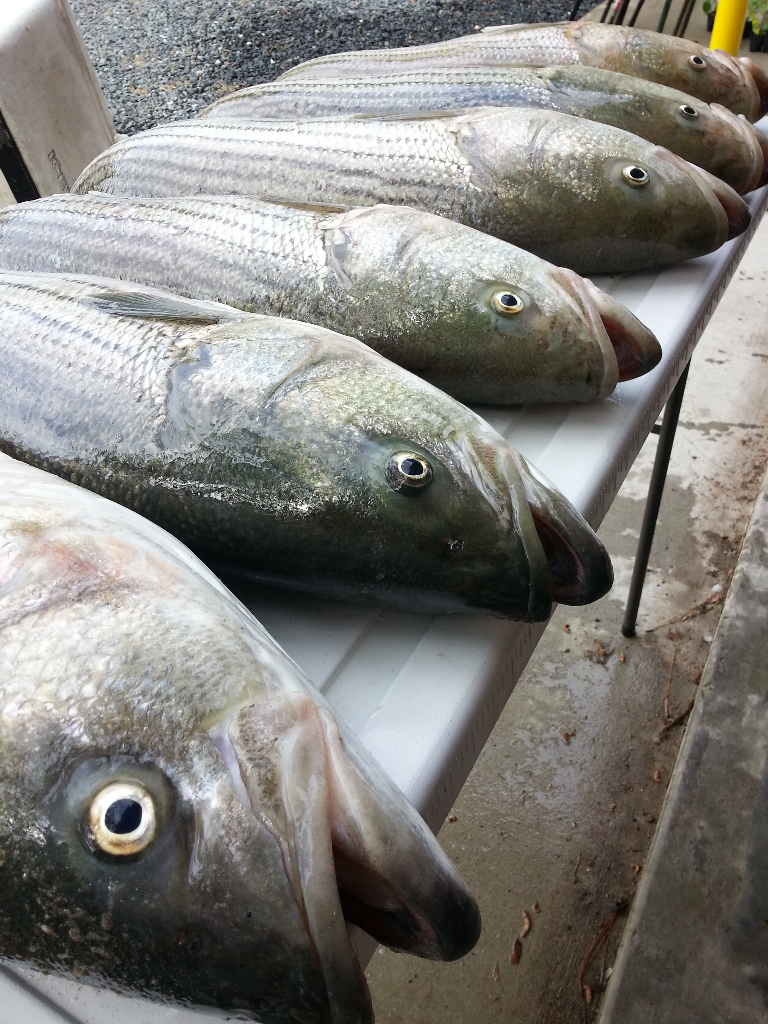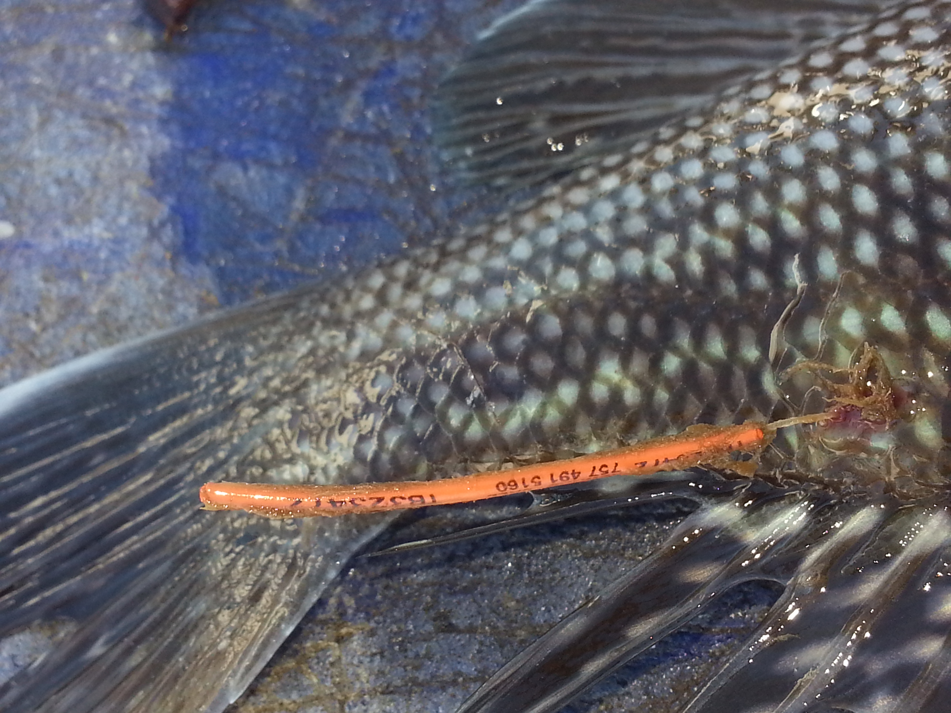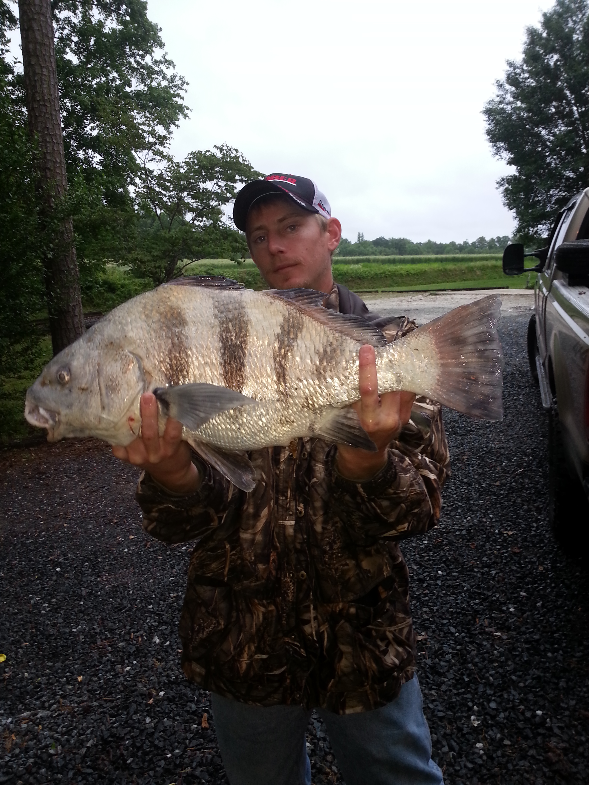 ![A Virginia trophy season rockfish from the surf, with a tag!]()