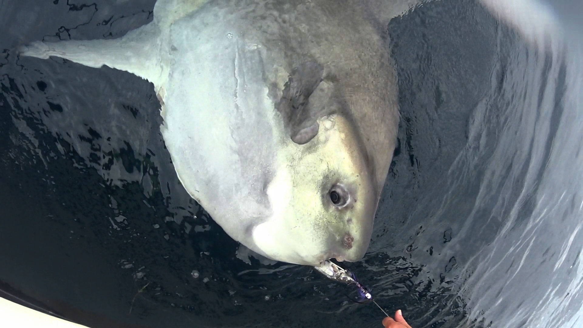 We tried to jump on the end of an almost non existent bluefin tuna run this year. Went out and trolled the 20 line dragging a WWB (way way back) line in search of the bluefins that are normally around this time of year. an hour intro trolling we get our bite! Line dumps off our 80 class reel and we strap a guy in for a fight. An hour later, we have the fish almost boatside when it starts to look funny in the water…. Wait, that is not a tuna….. Somehow, a giant ocean sunfish decided to actually EAT our bait.