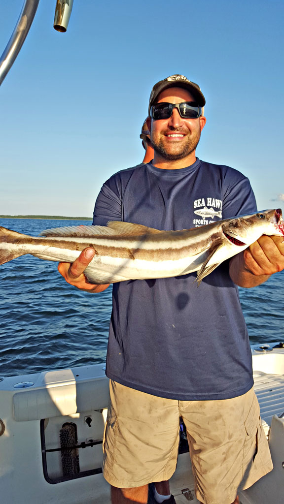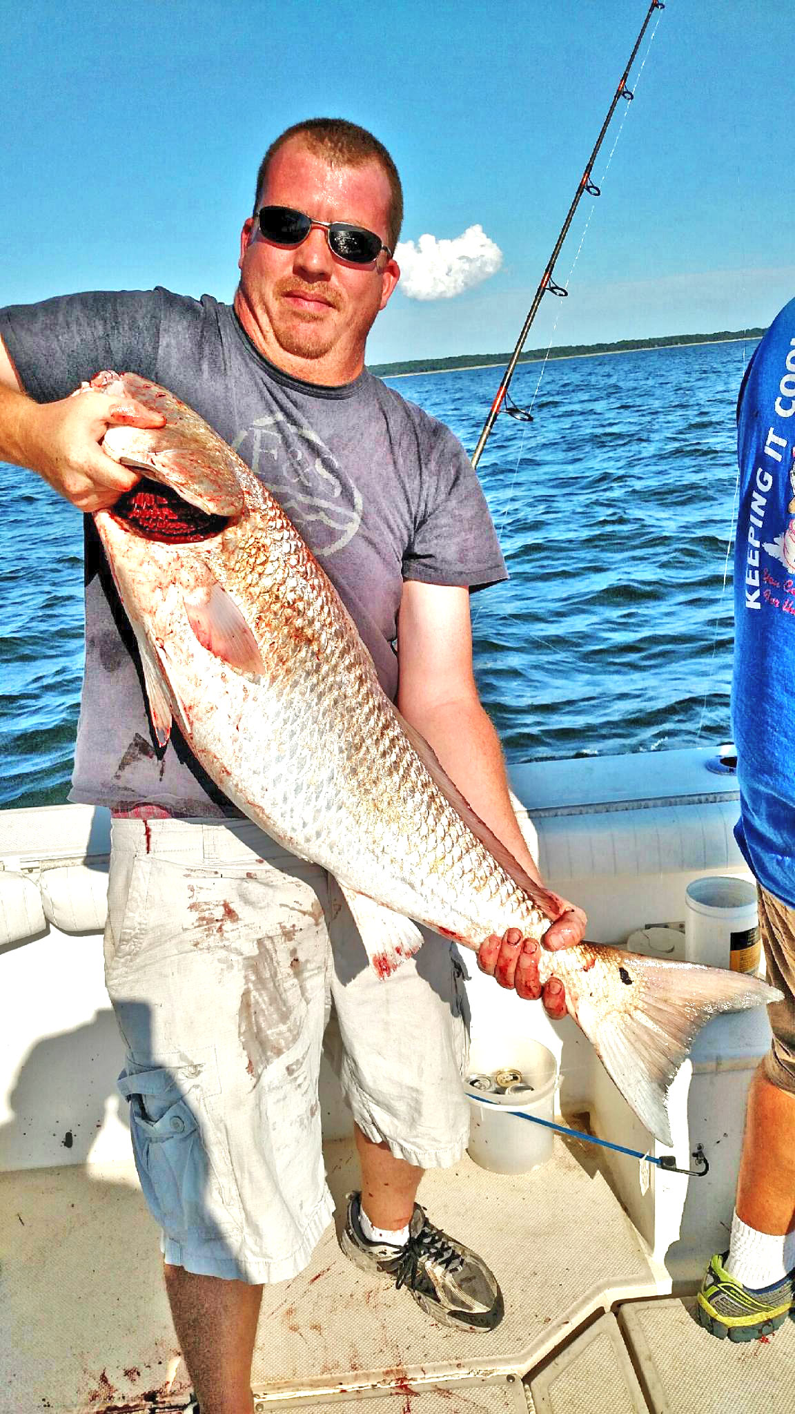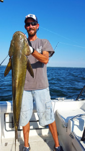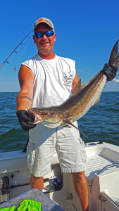 So the latest good news is the red drum bite off Bayford VA. This run usually starts good the 2nd week of August. This year was no different, and the fish are still there now. After spending the last month fishing offshore it is a nice change to get back to the bayside. This fishery is fun and fairly easy to do. This time of year the large bull red drum seem to prefer to eat fresh fish instead of peeler crabs like the do in the springtime. This makes bait cheap and easy! We usually start with a couple peelers or a bag of blood worms and catch our bait. Out of Morleys wharf or Bayford VA there are deeper holes in the creek. Stop in these areas and drop small hooks down with bloodworms to catch spot and hardhead or kingfish. All of these make good drum baits. The best is spot, next is hardhead/kingfish and lastly bluefish, but all do work. No need to keep the small fish alive, you can get more baits out of them but cutting each one up. When cutting for bait we chop of the head, then cut the fish into 1.5″ wide pieces all the way to the tail. Typically we don’t use the head or tail even though the head is supposed to be a good bait. Well, screw the head I hardly catch anything on them, chum with that sucker…