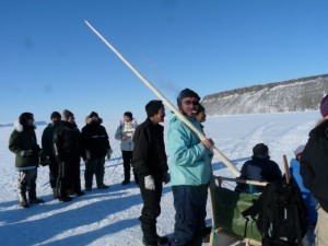 So, they tell us that the seals have already heard us and we cannot get close enough to actually take a shot on one. Cool man, whatever, were out here to do anything. So we keep riding and come up to a pressure ridge in the sea ice. This is where two chunks of ice push each other a it pops up, a good place for a seal to breath. It was also apparently a good place to string up a seal net. We got off and they checked two nets, one of which was very tangled. these guys were working with bare hands on the wet net. It was so damn cold I could hardly feel my fingers, they are tough. Long story short, no seals today, but it made for a pretty cool video.