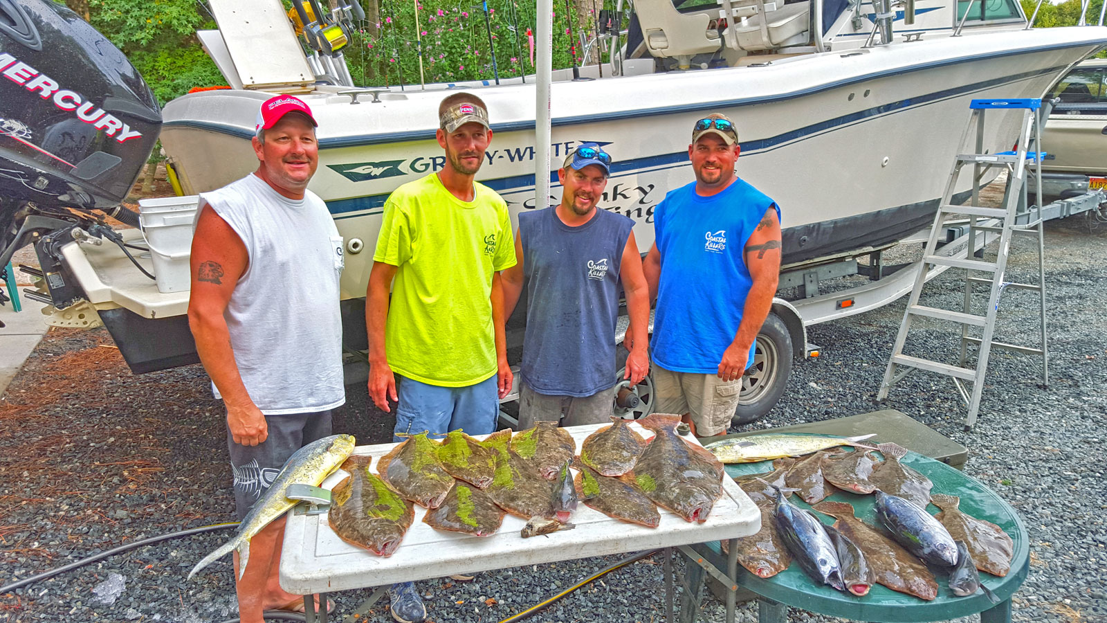 Most likely the last flounder wreck trip of the season, fish spread out and push off this time of year. This makes a total of 141 keeper flounder over the rail on the new boat this year. So what’s next? Moving bayside the next 2 weeks, Onancock bay Challenge is Sept 19th. Going to try to find a bayside flounder or a hardhead or spot or any damn little fish. Waxing moon last week of September this year and a good mullet run going now? means Bull reds in the surf soon…. Will be there after playing in the mud puddle next week.