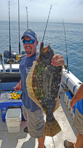 Back offshore. Last 2 trips we did kinda sucked, well strike 3… Had a good weather forecast and we wanted to bail some dolphin on spinners, just like last time right? Wrong… So, thought we had a secret anchored ball out in 35 fathoms that we found last time. It had 2 poly balls and a flyer, long rope to the bottom, the perfect setup that we found a week before. Still should be right where we left it right? Nope… I don’t know where the thing came from or where it went, but she was gone. Not even pulled the throttles back and we go to plan B, swing south, 8 mile run to the Navy buoys, figured we have a shot a dolphin even though we heard they were empty the day before. Well they were right, no fish anywhere. We had live peanut bunkers and they were pretty. Just no damn fish to eat them… OK Plan C, break out the trolling gear and head east until the water does not look like incredible hulk piss. Took about 3 miles and we were in clear water north of the East wall of the Norfolk. Had a wreck in 220ft that we never dropped on so push to that, find it, break out wreck gear and drop. and back up. and drop again. and back up. This is bullshit, not a fish one on this high relief wreck. Back to trolling…