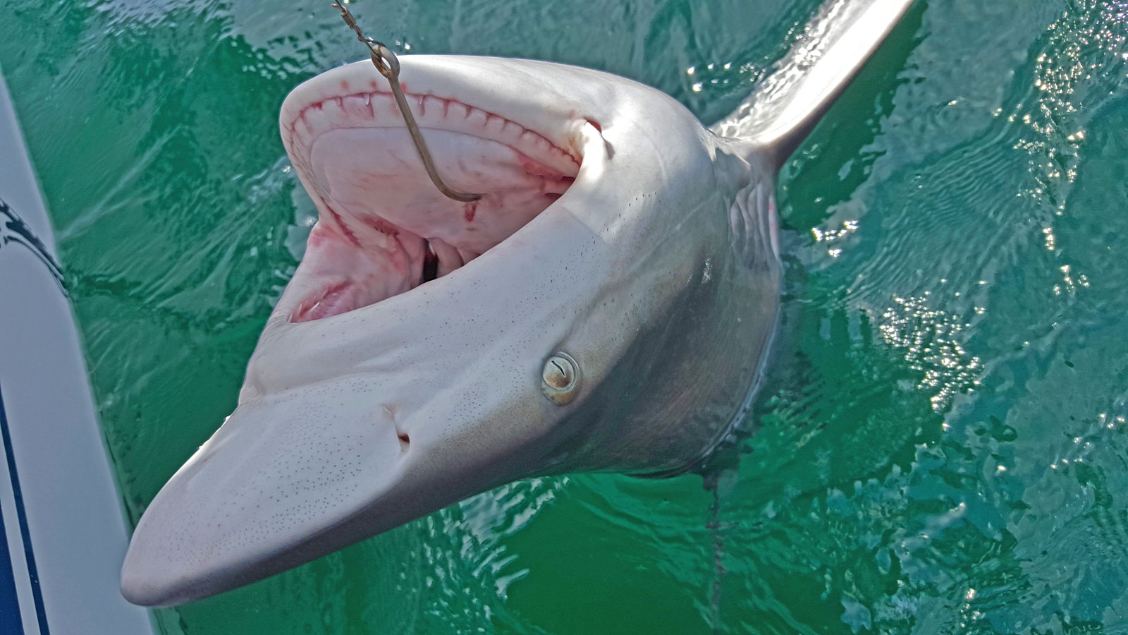 After the limit, we tossed out a bag of chum, kill an hour and try for a shark or cobia. After an hour, and getting bored, our farthest balloon starts dancing. Ha, look we’re getting a bite, HOLY SHIT! this damn spinner shark leaps his ass out of the water like a Mako would, except spinning in crazy circles. He cleared 6ft in the air, what a show and all of us get to see it. Few minutes later he is boatside getting his portrait taken then clip him off. OK, cool some action, guys are happy, head on in early, lot of flounder to clean, just right…
