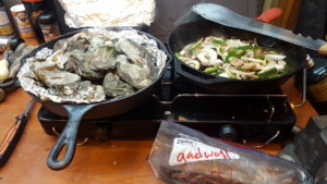 My fingers we not working correctly as we tied the skiff up. I was dreaming of that wood stove inside. A quick unloading of the birds and gear we were done. The generator fired to life and the lights spoke up in the dark main room. The next thirty minutes I spent with my new hot cast iron best friend. Feeling slowly came back in my fingers, enough to open the Natural Light stowed in my cargo. I was to be the night’s cook and for dinner I had brought all the fixin’s for cheese steaks, Wigeon and Black duck cheese steaks of course. I did an entire filming of how to cook duck cheese steaks, which also did not survive the camera fail. Regardless we ate good, and drank good too. The ice and snow relented to clear skies however the wind kept up and that led to a drastic drop in temperature. The Oyster house had minimal insulation (none) and the temperature would drop ten degrees per two feet you got away from the wood stove. I stayed next to my iron friend for the rest of the night. My dozen other silver can friends joined the party as well. I was told to check out the “stars” well I was not expecting what I saw. Looking out that crisp windblown night, I have never seen the sky so clear, only miles from where I grew up this was a different world.