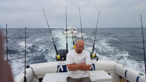 Boat is fixed up, warm water is back south, out to the canyons we go again, another 200 mile round trip, 200 fathoms in between the Washington and Norfolk. This time I had my old boat captain with us, sure felt good to work together again. He had the wheel and I got to play in the pit all day. Highlight of our day was landing a stud Wahoo. First one I had heard of this season. Went 70lbs, man they are awesome fish. Make sure when you have a wahoo on that the boat never stops. They are smart fish and they want to hide under your boat. If you slow down too much he will run right under and be gone. When we saw it was a big hoo we pushed the boat up fast enough that he couldn’t get to his hiding spot…Gotcha hoo… There was a lot more small tunas and we ended the day catching 9 yellowfin with 3 keepers. I think the bluewater bug bit my old capt again that day, it happens.